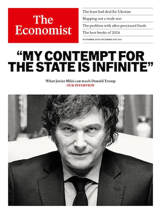 The blatantly fake Javier Millei in Argentina has schooled me on this. I began to smell a rat when he went to Davos and told them all to suck eggs, and then The Economist wrote favorably about it. Check out the cover. “My contempt for the state is infinite.” What a stupid thing to say.
